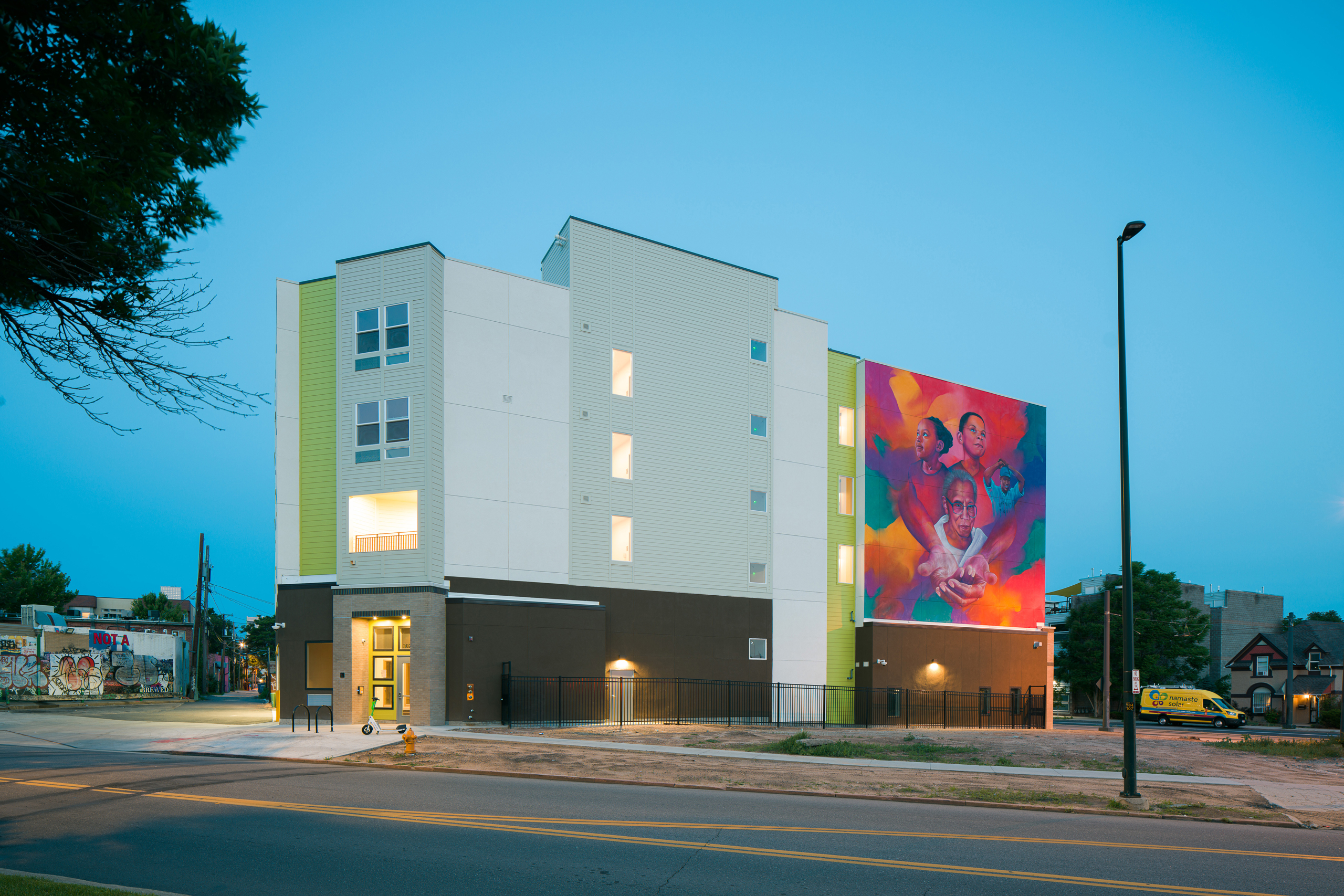 Charity’s House opened in Spring 2023 in the historic Five Points Neighborhood in Denver and includes 36 units of supporting housing. The development is a partnership between Community Outreach Service Center and BlueLine Development. Charity’s House results from the vision of long-time community leaders Pastor Robert Woolfolk and Mrs. Eddie Woolfolk, who have served the community through Agape Church and the Community Outreach Service Center, which they established in 1988. Long wanting to build apartments for community members in need, the Woolfolks acquired the land for the apartments from the family of Thomas A. Albright, a baseball player in the Negro League who moved to Denver.